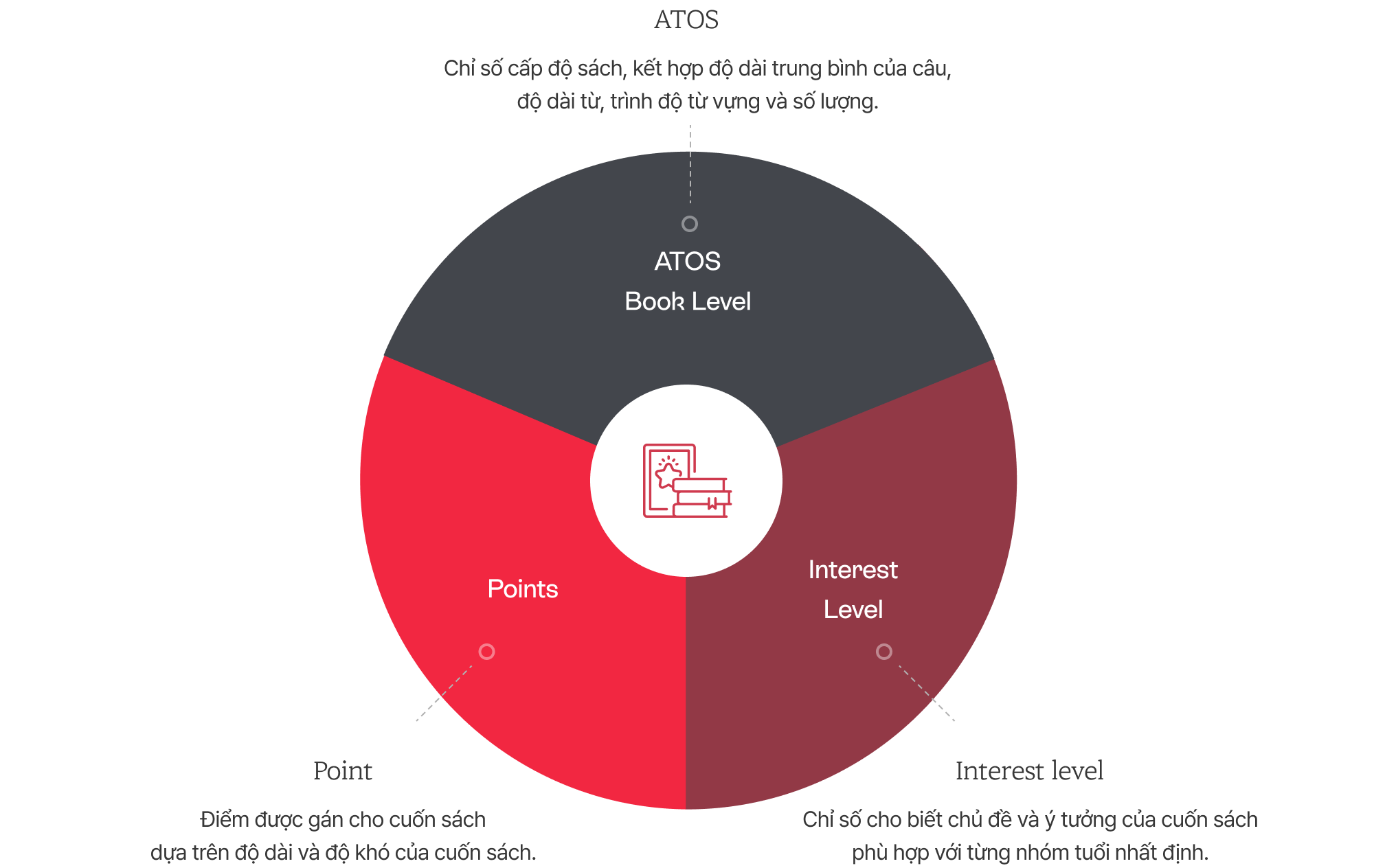 Để hình thành thói quen đọc hiệu quả, việc lựa chọn sách phù hợp với trình độ đọc và sở thích của học sinh là vô cùng quan trọng. Ba chỉ số dưới đây là những chỉ số sách tiêu biểu của Renaissance Learning, được sử dụng nhằm hỗ trợ việc đọc tiếng Anh một cách hiệu quả.