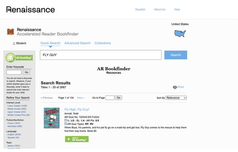 "Thông qua công cụ AR Bookfinder, học sinh, giáo viên và phụ huynh có thể tìm kiếm những cuốn sách có kèm bài kiểm tra AR. AR Bookfinder hỗ trợ hơn 200.000 đầu sách thuộc cả thể loại hư cấu và phi hư cấu. Người dùng có thể tìm sách theo nhiều tiêu chí khác nhau như: cấp độ sách ATOS, chỉ số Lexile, mức độ quan tâm (Interest Level), tên sách, tác giả, thể loại hư cấu/phi hư cấu, chủ đề và các tác phẩm từng đạt giải thưởng."