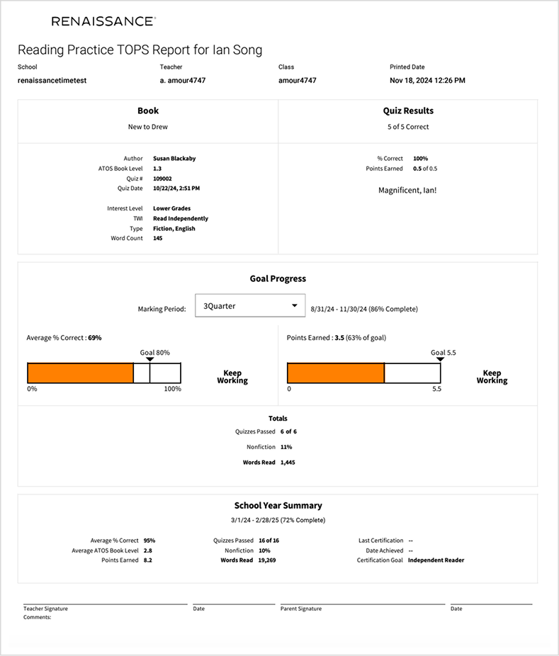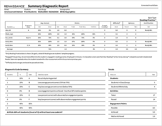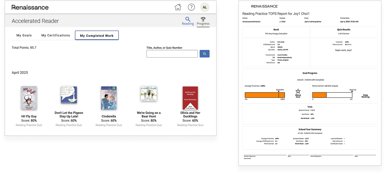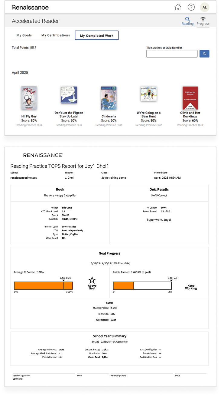 Dưới đây là một số báo cáo tiêu biểu của Accelerated Reader.