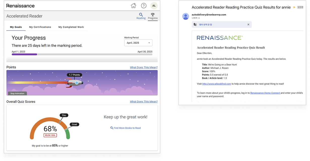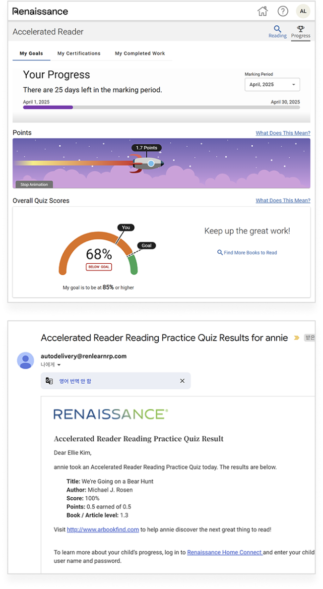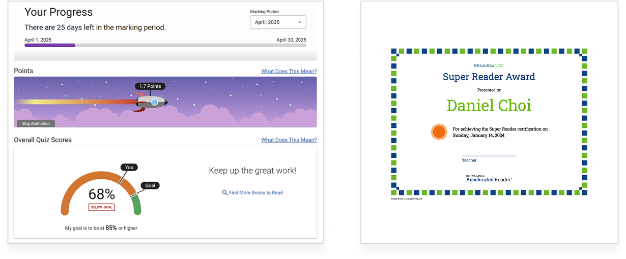 Các bài kiểm tra phù hợp với trình độ của học sinh, kết hợp với hệ thống điểm thưởng được trao dựa trên tỷ lệ câu trả lời đúng, giúp tạo động lực để học sinh tiếp tục đọc. Khi đạt được mục tiêu, học sinh còn được ghi nhận bằng chứng nhận, qua đó nâng cao sự tự tin và cảm giác thành tựu. Cách tiếp cận này góp phần hình thành thói quen đọc chủ động, hiệu quả, đồng thời khuyến khích học sinh tự đặt và theo đuổi mục tiêu học tập cho bản thân.